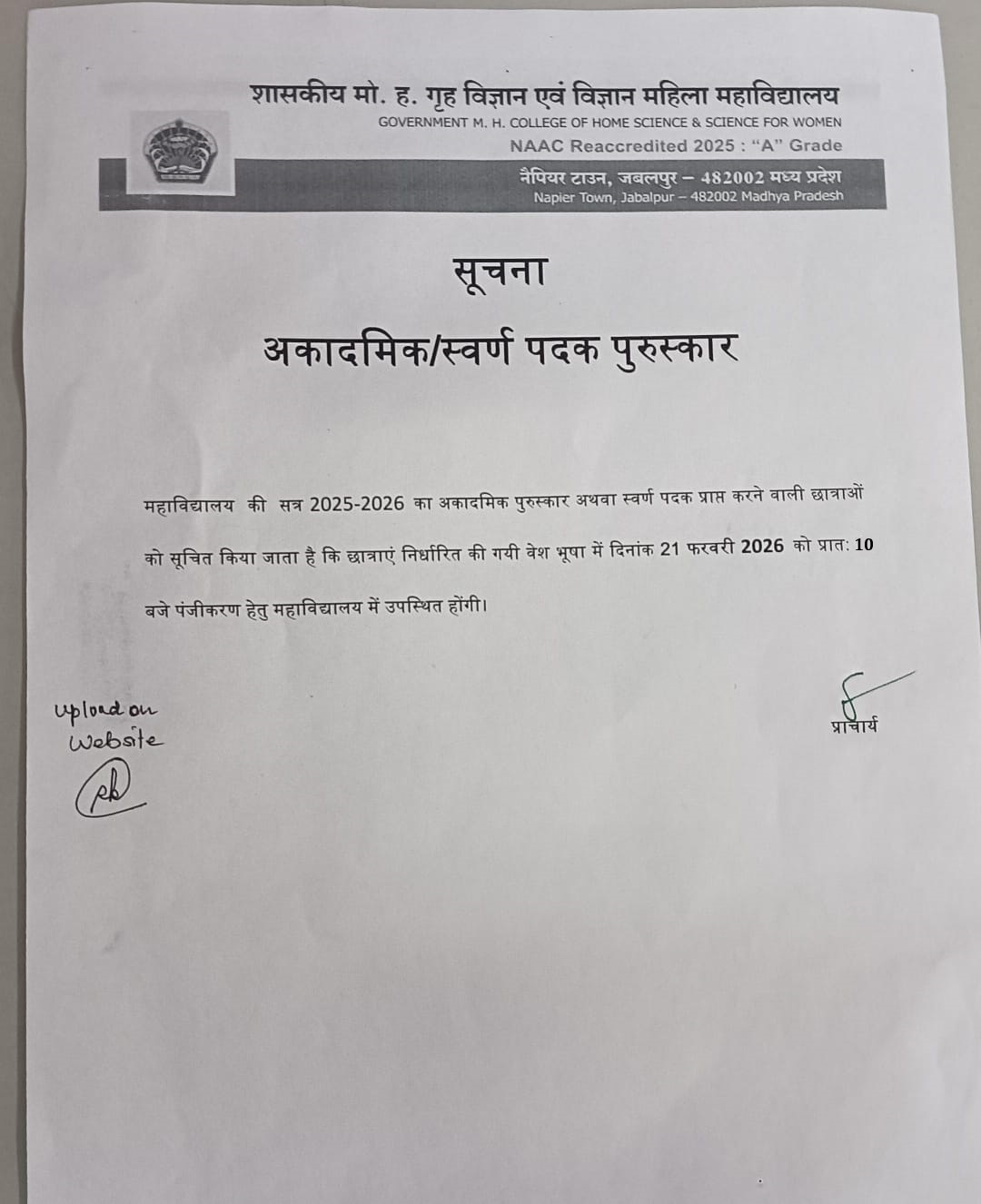 Government M. H. College of Home Science & Science for Women, Autonomous, Jabalpur, M. P.