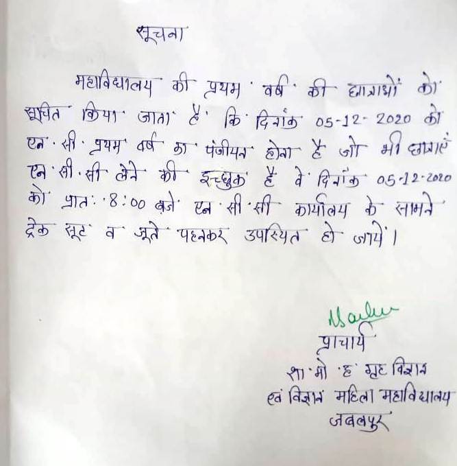स्नातक एवं स्नातकोत्तर की प्रायोगिक एवं सैद्धांतिक कक्षाओ हेतु सूचना 28.12.2020
